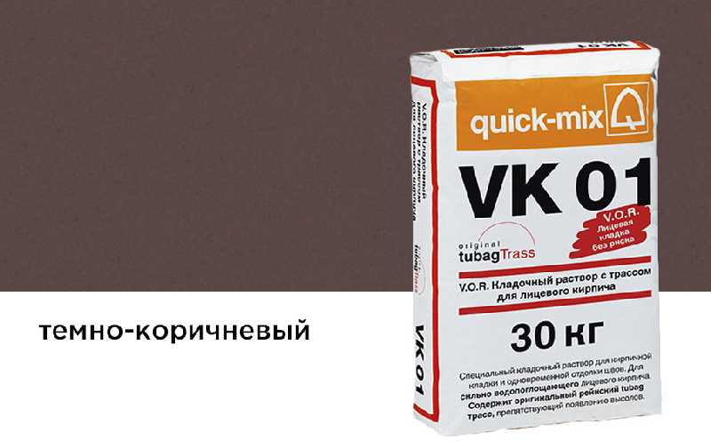 Цветной кладочный раствор quick-mix VK 01 с трассом для выполнения кирпичной кладки и одновременной отделки швов (в одном рабочем цикле) при использовании сильно водопоглощающего лицевого кирпича с водопоглощением ~ 8-10%.