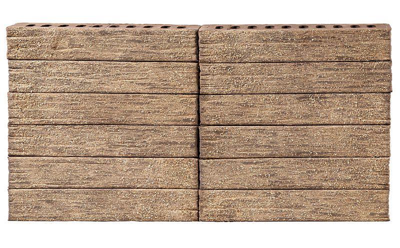 Лицевая поверхность имеет уникальный рельеф, который дополнительно визуально удлиняет кирпич. Также в производстве используется технология торкретирования — нанесение на поверхность декоративного покрытия.
